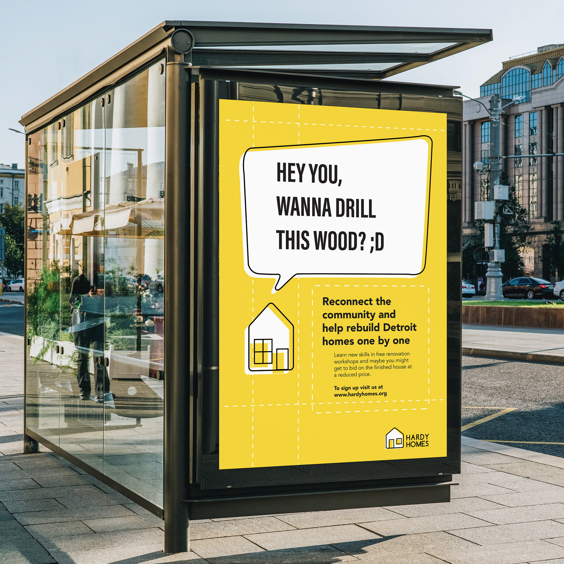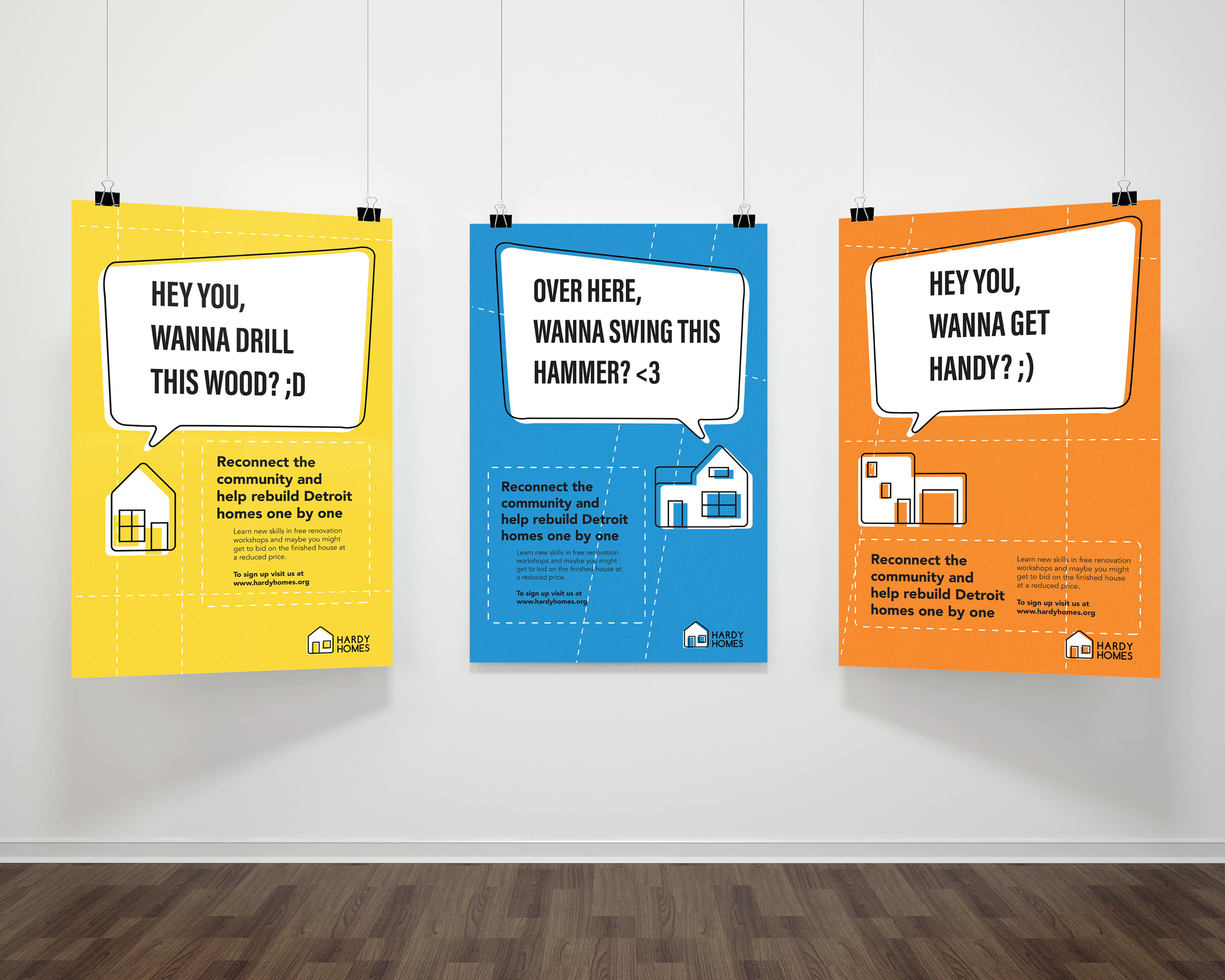 Branding campaign for a (fictional) organization that provides renovation workshops in Detroit.