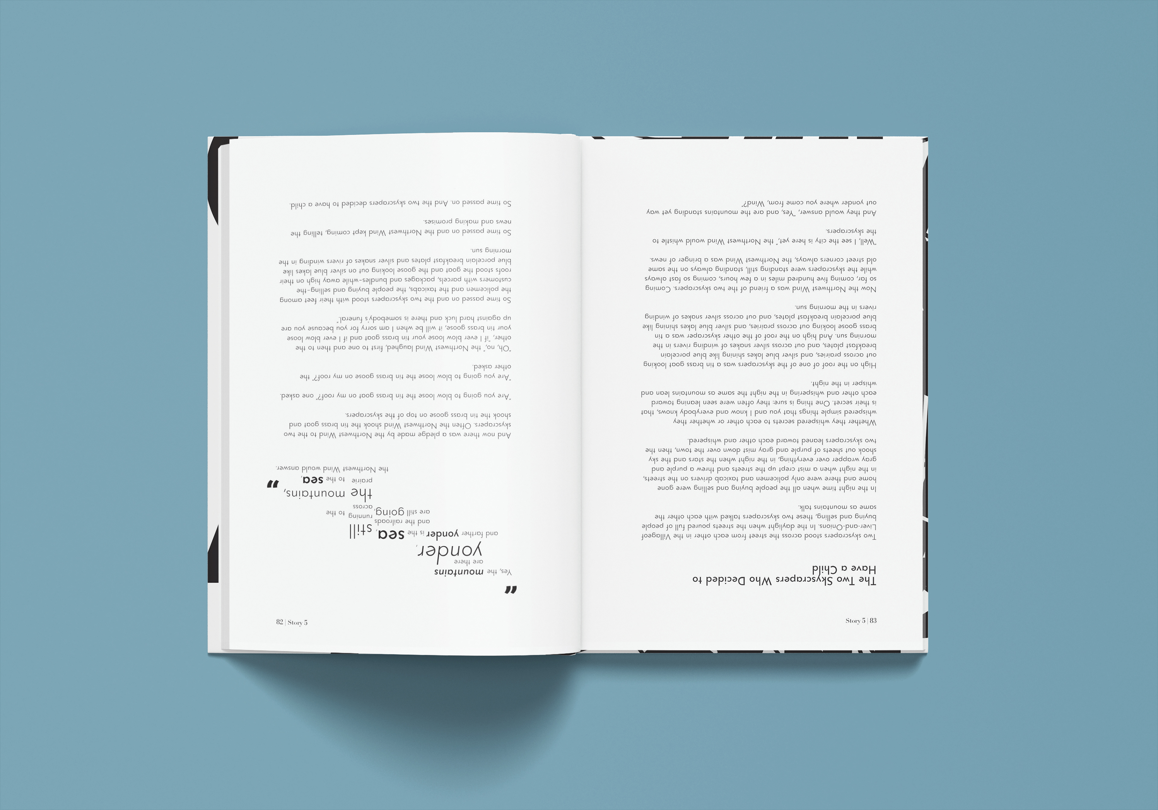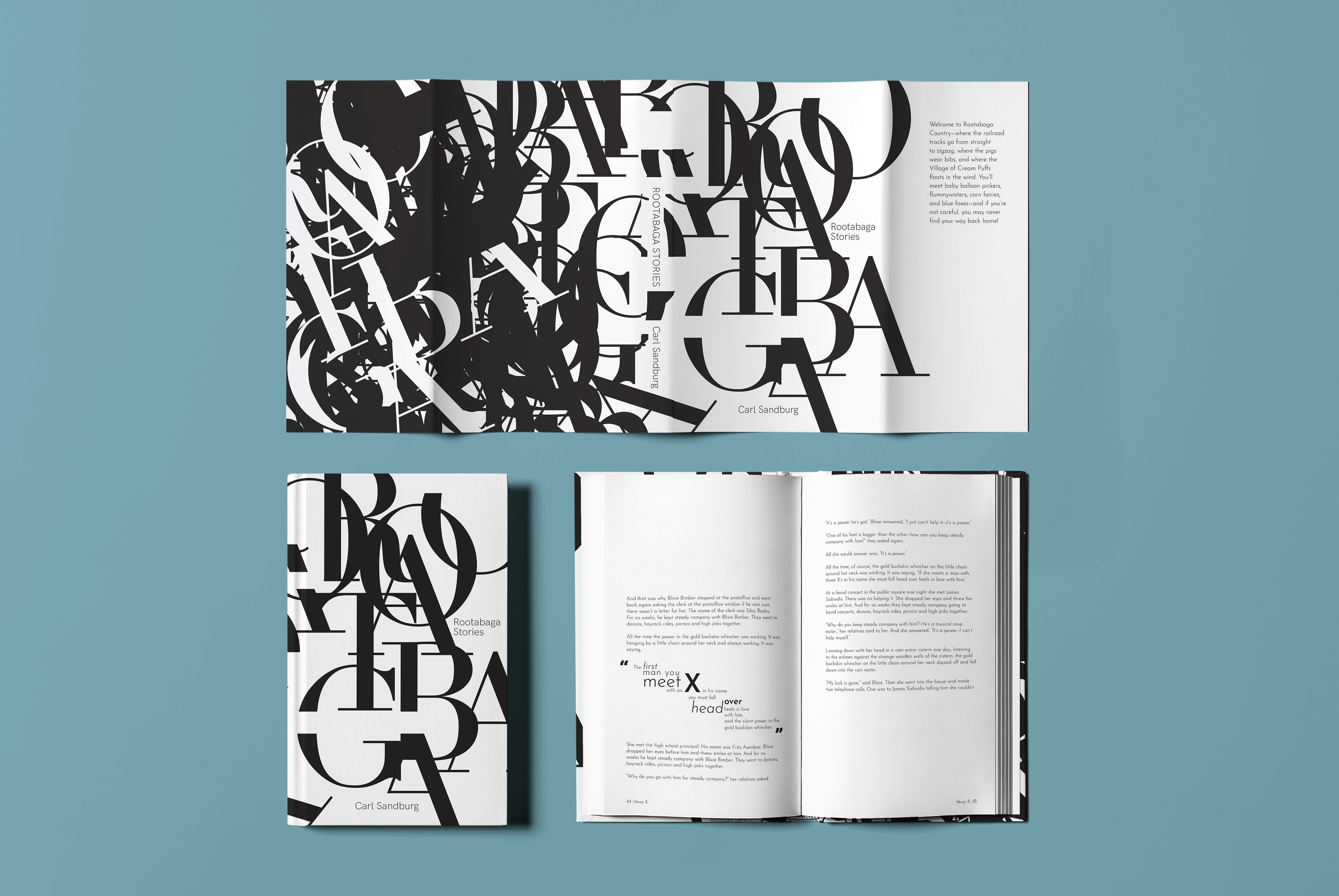 A book design for a children's book called "Rootabaga Stories" by Carl Sandburg.
