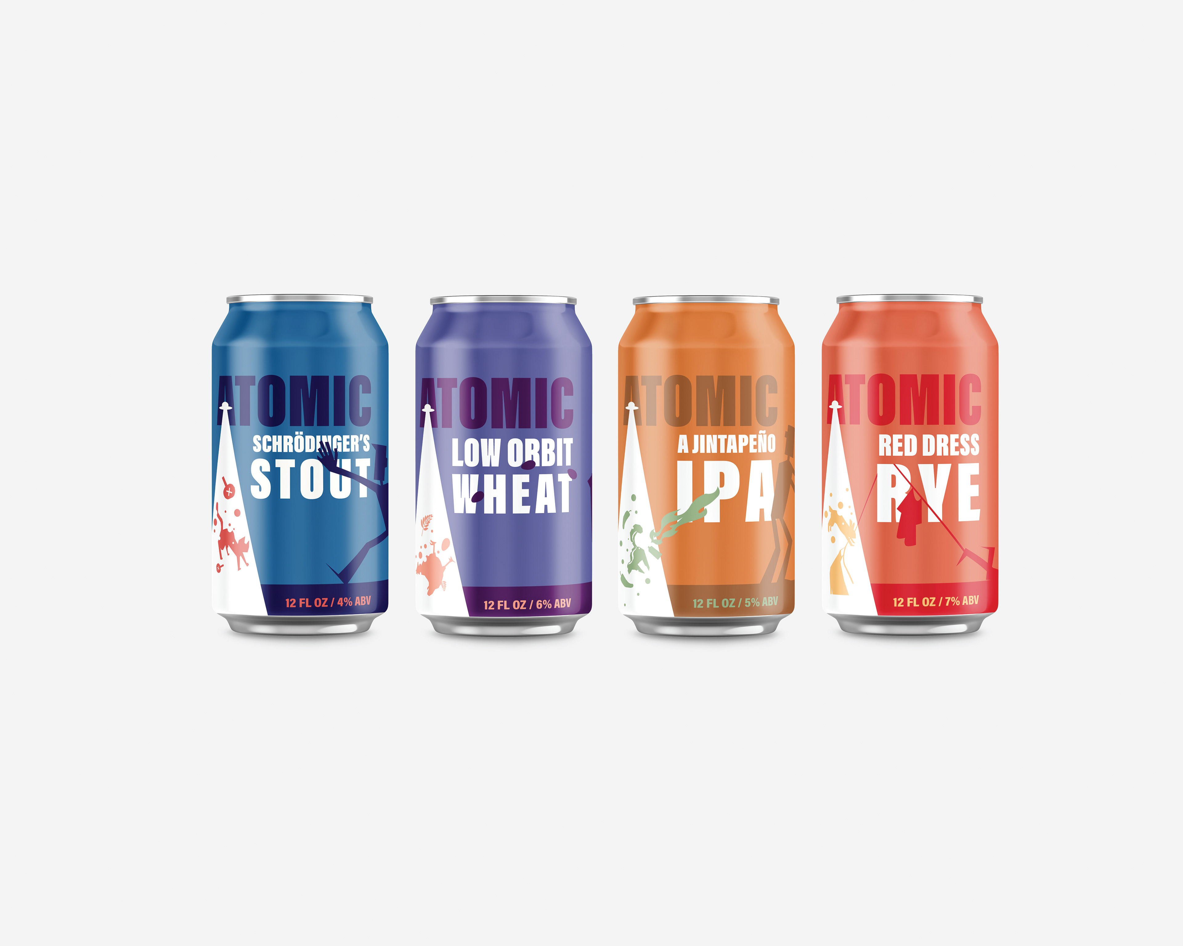 Proposed beer can labels for client Atomic Beer Lab Brewery based in Las Vegas, NV.