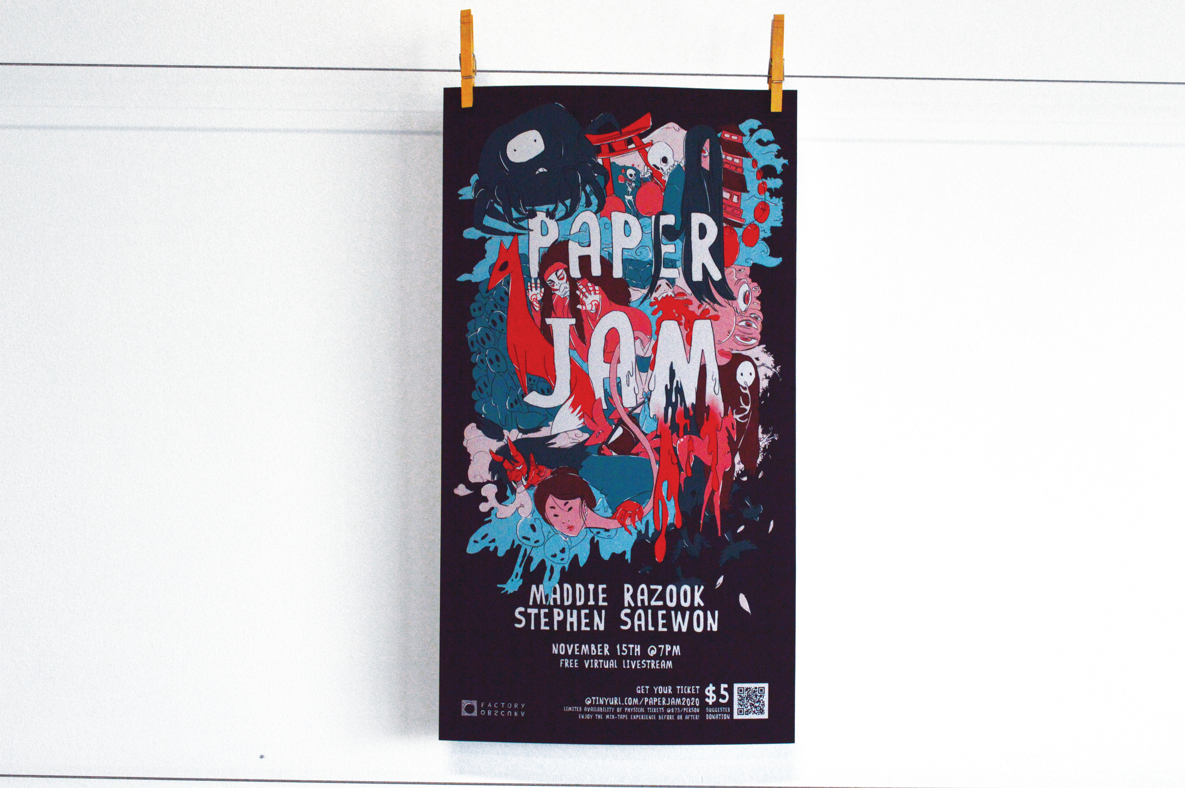 Poster and social campaign for UCO School of Design fundraising event called Paper Jam.